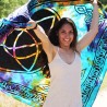 Bonita pulsera que combina perlas barrocas en los colores de los 7 chakras y una flor de vida en metal plateado. Fotos no contractuales.