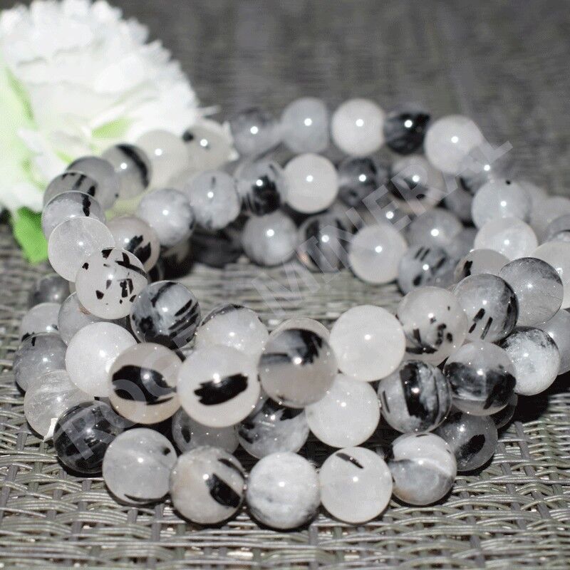 Bracelet Cristal de roche inclusion de Tourmaline noire, perles 8mm