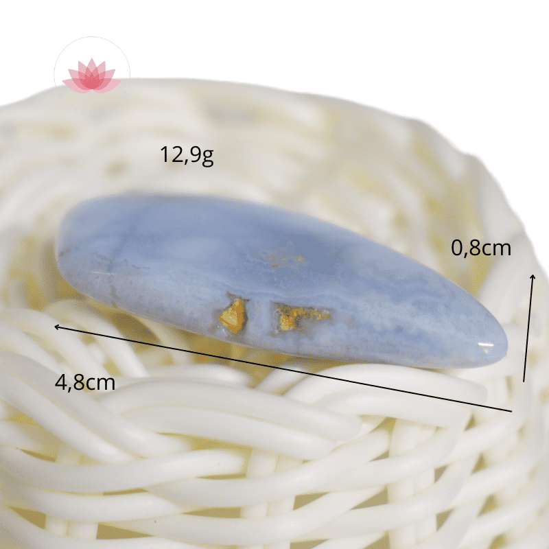 Son nom vient de Chalcedoine, ville d’Asie Mineure située sur le Bosphore (actuelle Turquie), où elle fut découverte et exploitée dès l’Antiquité. Chez les Romains, elle était portée comme talisman pour favoriser l’éloquence et la parole fluide. Le célèbre orateur Cicéron aurait lui-même porté une calcédoine lors de ses discours. Dans certaines traditions, elle symbolisait aussi la douceur maternelle et la protection affective, notamment envers les enfants. La variété Blue Lace, avec ses nuances bleues nuageuses, est devenue un symbole moderne de communication apaisée. Elle représente le calme après la tempête émotionnelle, la parole douce qui guérit et la confiance retrouvée dans le dialogue. La Calcédoine est une pierre d’apaisement, d’expression douce et de présence consciente. Sa vibration subtile agit principalement sur le chakra de la Gorge (Vishuddha), centre de la communication authentique, mais aussi sur le chakra du Cœur (Anahata), en harmonisant la parole et le ressenti. Elle relie également au chakra du Troisième Œil (Ajna), en favorisant la clarté d’esprit et la cohérence intérieure entre pensée, émotion et parole. Sa fréquence calme favorise une parole sincère, posée et bienveillante. Elle aide à traduire les émotions en mots justes, à dire sans blesser, à écouter sans se fermer. En cela, elle devient une alliée précieuse pour celles et ceux qui souhaitent exprimer leur vérité avec délicatesse et respect. Depuis l’Antiquité, la Calcédoine est considérée comme la pierre des orateurs et des enseignants. Elle soutient la fluidité verbale, aide à dépasser la timidité, la peur du jugement et les tensions liées à la prise de parole. C’est une pierre idéale pour communiquer dans les contextes émotionnellement sensibles ou dans les relations où la parole est un instrument de guérison.