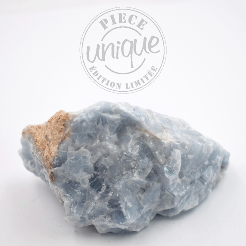 La Calcite bleue brute ou polie est une variété de calcite, un minéral appartenant à la famille des carbonates. Sa formule chimique est le carbonate de calcium, soit CaCO₃. Ce minéral est extrêmement répandu dans la croûte terrestre. Il constitue une grande partie des roches sédimentaires comme le calcaire et la craie, et entre également dans la composition du marbre, une roche métamorphique. Ce même carbonate de calcium est aussi un élément fondamental de nombreux organismes vivants : il forme les coquilles des mollusques, les structures du corail, les carapaces des crustacés et les coquilles des œufs. Sa présence dans la nature est donc aussi bien géologique que biologique.