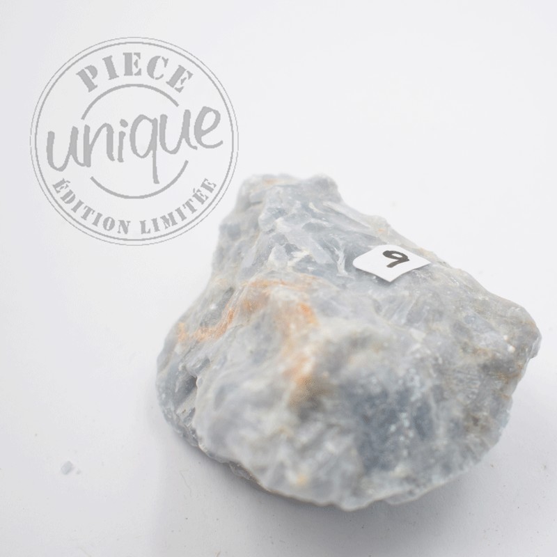 La Calcite bleue brute ou polie est une variété de calcite, un minéral appartenant à la famille des carbonates. Sa formule chimique est le carbonate de calcium, soit CaCO₃. Ce minéral est extrêmement répandu dans la croûte terrestre. Il constitue une grande partie des roches sédimentaires comme le calcaire et la craie, et entre également dans la composition du marbre, une roche métamorphique. Ce même carbonate de calcium est aussi un élément fondamental de nombreux organismes vivants : il forme les coquilles des mollusques, les structures du corail, les carapaces des crustacés et les coquilles des œufs. Sa présence dans la nature est donc aussi bien géologique que biologique.