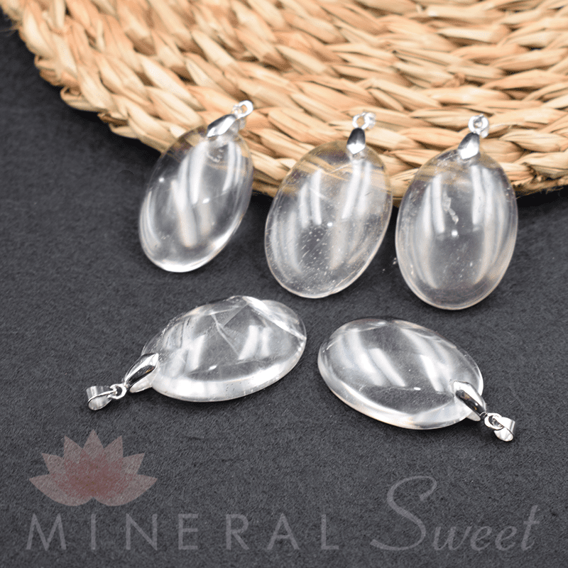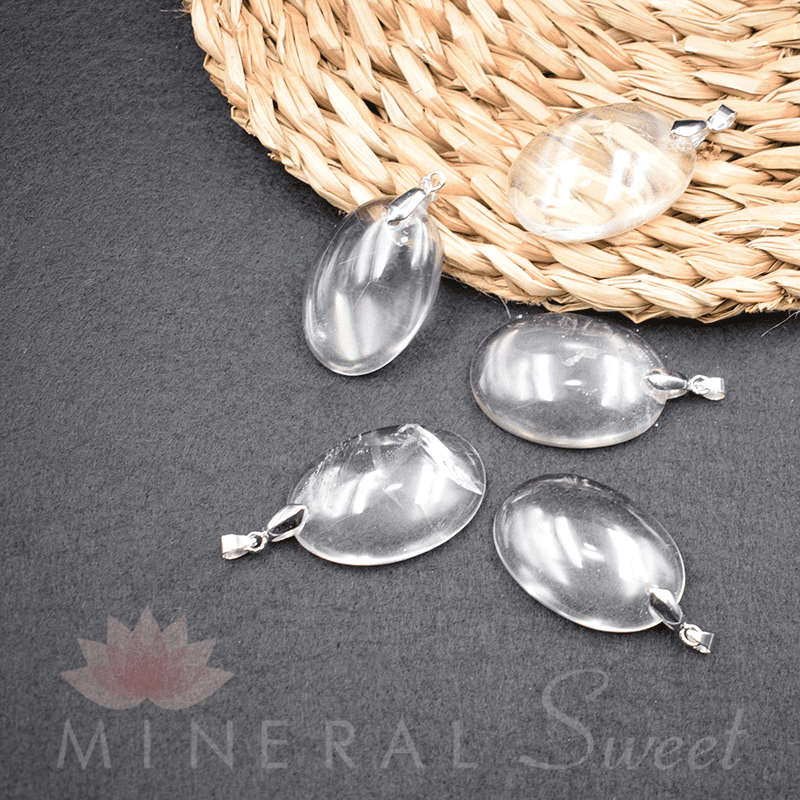 Colgante Cristal de roca ovalado / cierre metal blanco