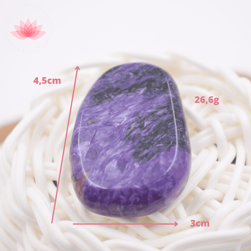 Galet chakkra Charoïte, pierre violette de transformation et de sérénité.