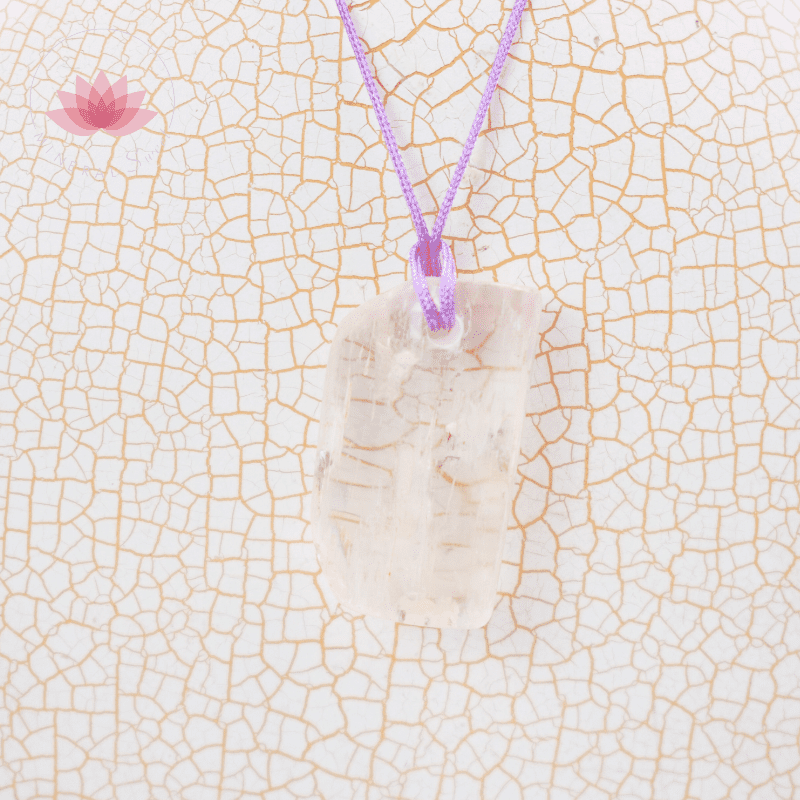 Kunzite pendentif. Avec un cordon en couleur mauve.