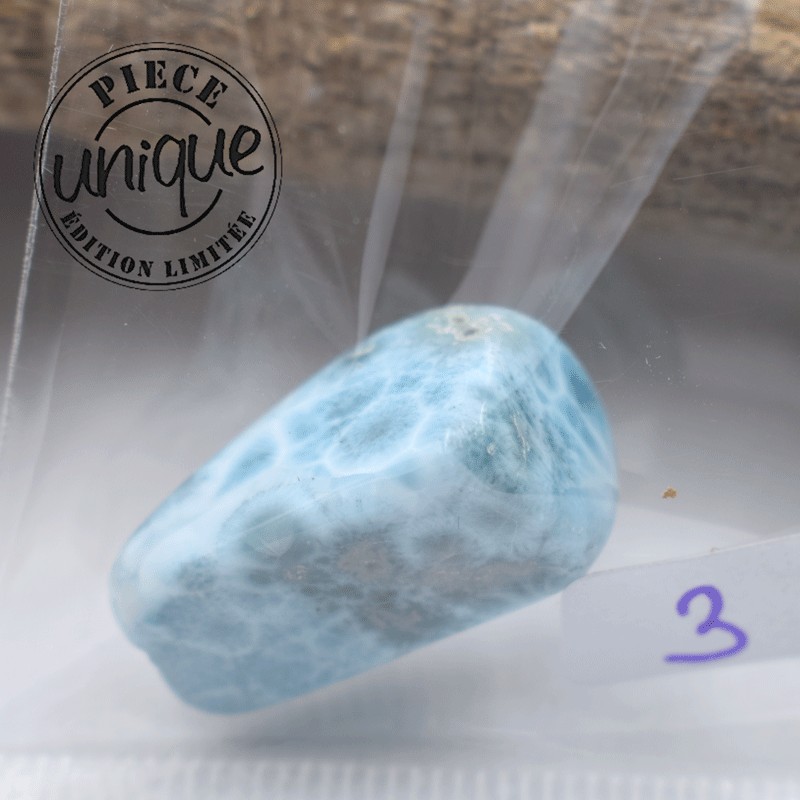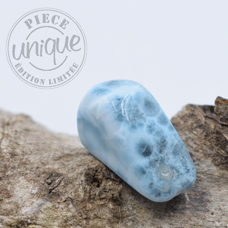 le Larimar : Pierre de calme et de douceur, apaise l’esprit et invite à respirer plus librement.