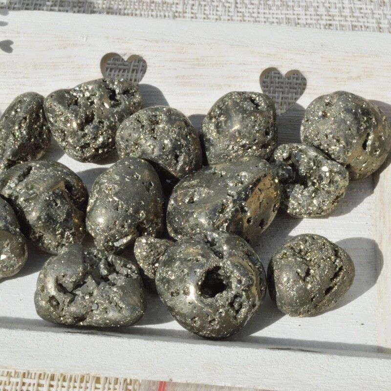 Piedra de fuerza y claridad, la Pirita protege la energía, estimula la confianza y favorece la acción constructiva.
