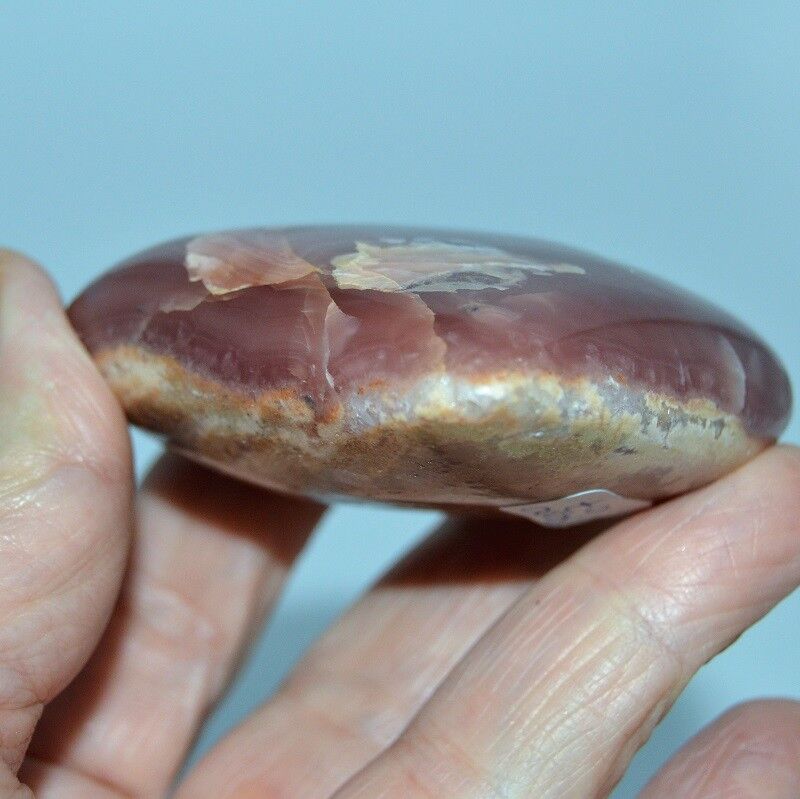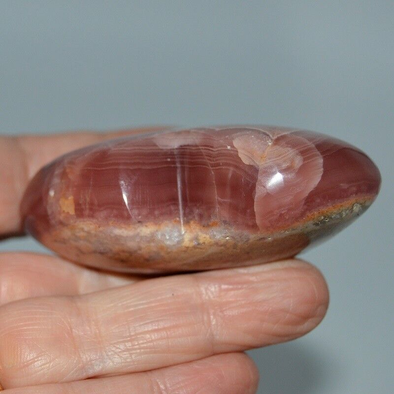 La Rhodochrosite est un carbonate de manganèse, de formule chimique MnCO₃. Elle contient fréquemment de petites quantités de fer, calcium, magnésium, zinc, cobalt et cadmium, éléments qui peuvent légèrement modifier sa couleur ou sa densité. Elle appartient à la famille des carbonates, sous-groupe des carbonates rhomboédriques. Sa couleur varie du rose tendre au rose framboise, parfois marbrée de bandes blanches ou grises dues à la présence de calcite. Elle se présente sous forme massive, stalactitique ou cristallisée, avec un éclat vitreux à nacré. Sa dureté est de 3,5 à 4 sur l’échelle de Mohs, sa densité moyenne est d’environ 3,7 g/cm³. Les plus beaux spécimens proviennent d’Argentine, notamment de la région de Capillitas, où la pierre se forme dans des filons hydrothermaux riches en manganèse. On la trouve également au Pérou, en Afrique du Sud, au Mexique, au Colorado (États-Unis) et en Roumanie.